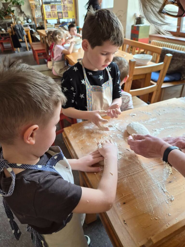Tento týždeň si deti skúsili prácu pekára. V Dielničke v Kammerhofe si samé vlastnou usilovnosťou upiekli chlebík, ktorý chutil na jednotku.